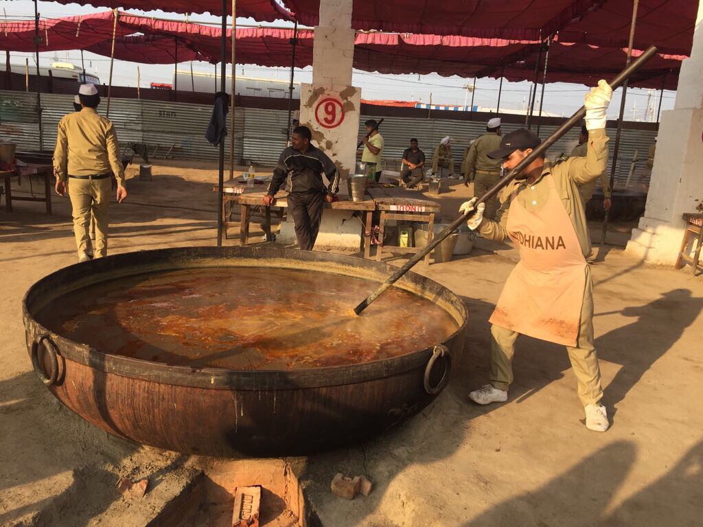 We were fortunate enough to be able to take a tour of the entire event and literally could not believe our eyes at the size of this production! The Sant Narankari Samagam aims to feed about 600,000 people per day. While the food is simple, just dahl (basically a deliciously spiced lentil soup), rice, and chappati (similar to a wheat tortilla), each meal is completely made fresh from scratch right there at the Samagam. The entire event is temporary and “pop-up”, which means that there is no actual kitchen to make all of this food! Instead, there is a collection of fire pits dug into the ground with the largest pots imaginable cooking dahl on one side and rice on the other. And when I say largest pots imaginable, I mean pots the size of a hot tub that would fit 10 grown adults quite comfortably.