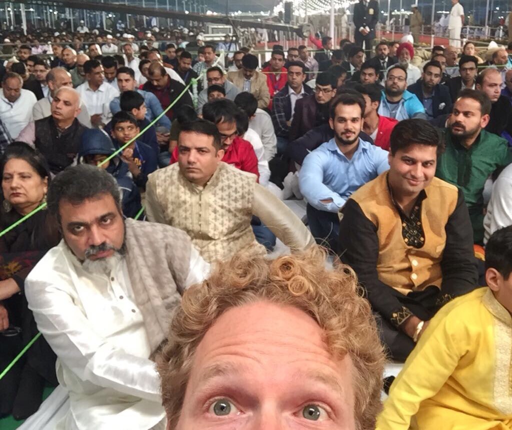 Imagine a temporary city built in the middle of an expansive, dusty, empty lot in the outskirts of Delhi, India. There are thousands of large multi-colored tents built side by side, running as far as the eye can see. Millions of people from all over India walk the paths between the structures, each dressed in either the bright colors and shiny fabrics traditional to their home region or typical city street clothes of jeans, t-shirt, and sneakers. A constant hum rises above the masses thick with the chatter of a multitude of dialects from every state in the country. People have gathered here from near and far to seek spiritual connection and healing with the blessing of Mataji, a beautiful graceful woman who sits quietly in a throne-like chair perched on a stage, overlooking and bestowing blessings upon her devoted followers as they present her with morning-to-evening constant flow of spiritual talks, musical performances, and original skits which highlight the importance of human morals and spiritual values.