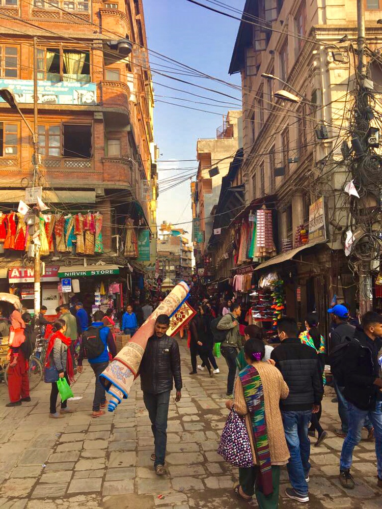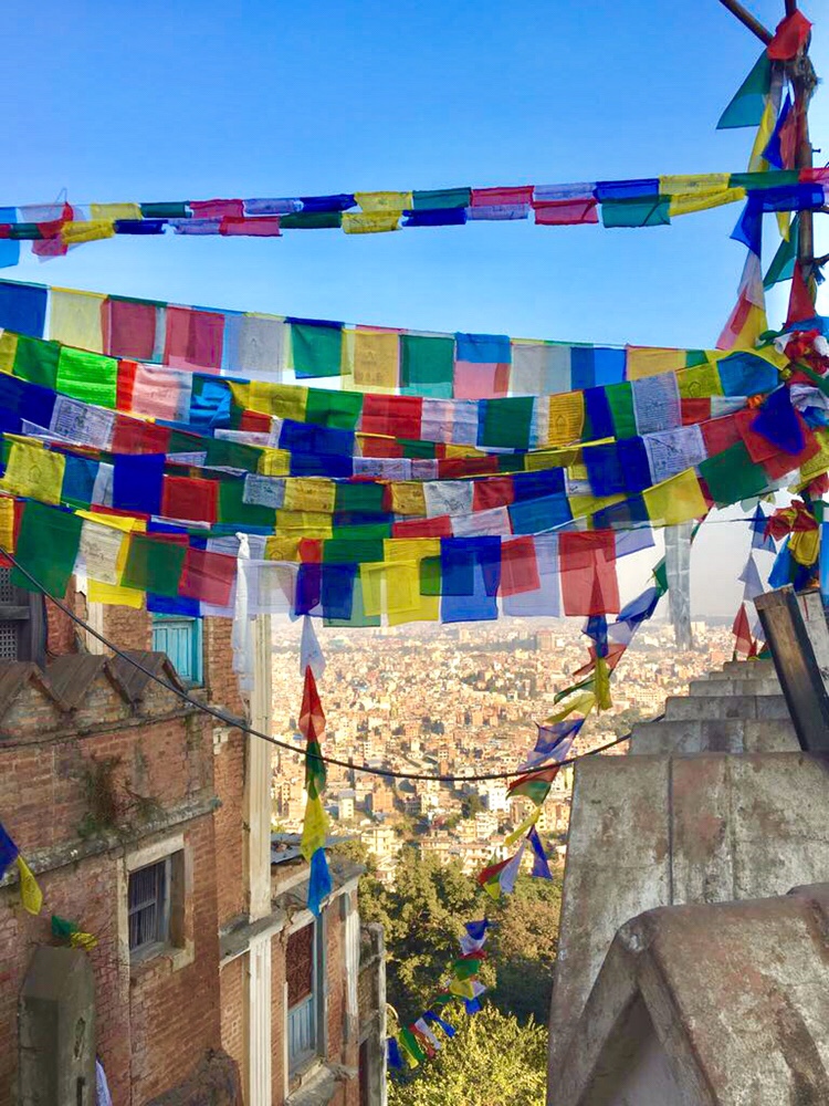 It is not very often that you find yourself giving chiropractic care to people in India, only to find that you are tucked away in the foothills of the Himalayas of Nepal two weeks later. Following our first chiropractic service trip in Delhi, we found ourselves trying to escape the smog-filled streets of Kathmandu to embark upon an epic backpacking mission into Nepal’s Khumbu region, home of the world’s tallest mountain range, including Mt. Everest, but also the region that was hit hardest in the devastating earthquakes in Nepal in the Spring of 2015. But before we could leave, we had to organize the details of our trip, obtain all the proper gear, arrange transportation to our drop-off point, and of course in between all of this catch a few essential city highlights. Our guesthouse was located in Kathmandhu’s Thamel Town, a very colorful tourist district that lures hoards of international budget backpackers into its orbit, densely packed with its plethora of souvenir shops, restaurants, travel agents, outdoor gear shops, and clothing stores lined closely on an array of narrow streets bound overhead by thousands of Tibetan prayer flags, reds, whites, blues, greens, and yellows, all waving in the wind.
