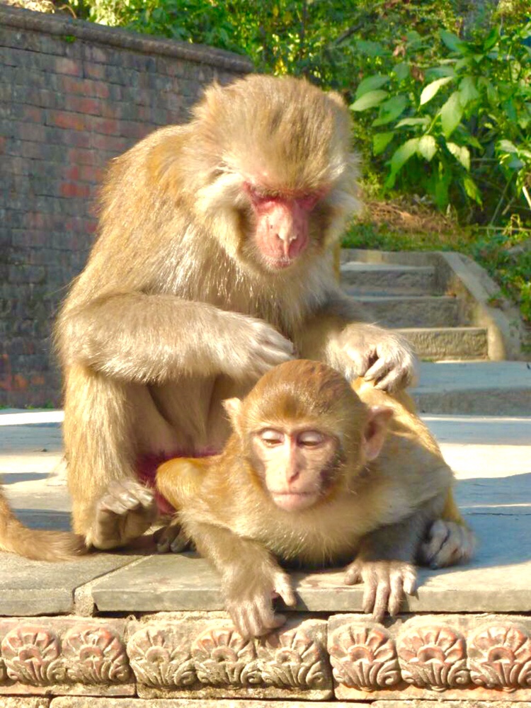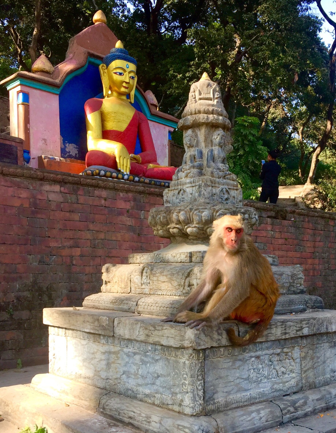 Just a few days before leaving Kathmandu, we took a walk across the city to the famous Monkey Temple, perched up high on a hill overlooking the city. We lost count of the all the steps we had to climb going upwards, however, we were greeted by the interaction of many monkeys along the way up, and were rewarded with fine views of sprawling Kathmandu at the top!