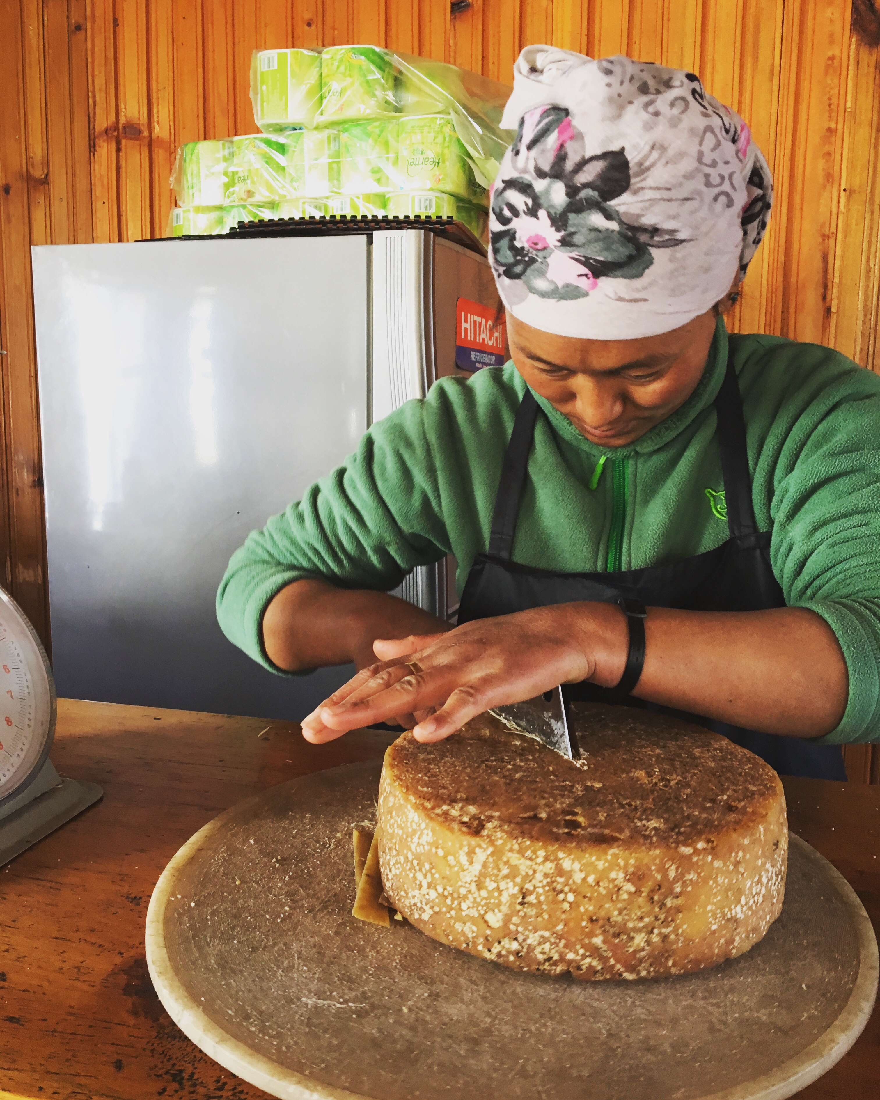 similar to Swiss Cheese in its texture and hole-y-ness, slightly milder in pungency, and about a third of the price that we would see for this cheese further on up the trail.
