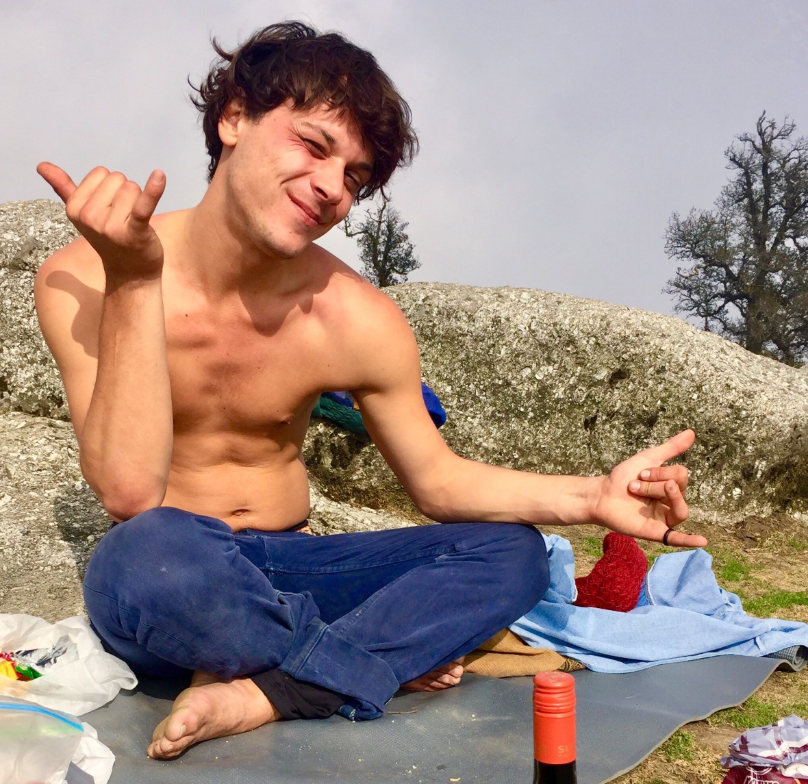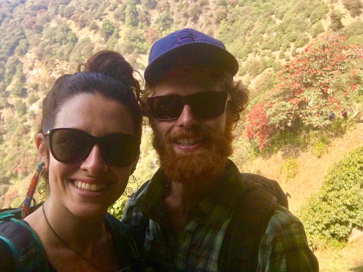 and set on a ledge overlooking the surrounding green Himalayan lowlands, we lay out our spread of food for our first picnic of the day. As we feast, we watch the hoards of weekend tourists making their descent on the trail nearby, and almost every person that passes is blaring rackety music from their portable speakers. “Turn it off and listen to the birds, the symphony of nature” we want to say to each of them, but alas we don’t, because we know this is a lesson that we can only hope these newbie nature tourists learn on their own someday. We turn our attention back to our appetites, and then clink our cups together, full of red wine, as we toast to our Italian friend Nicola, because today is his birthday!