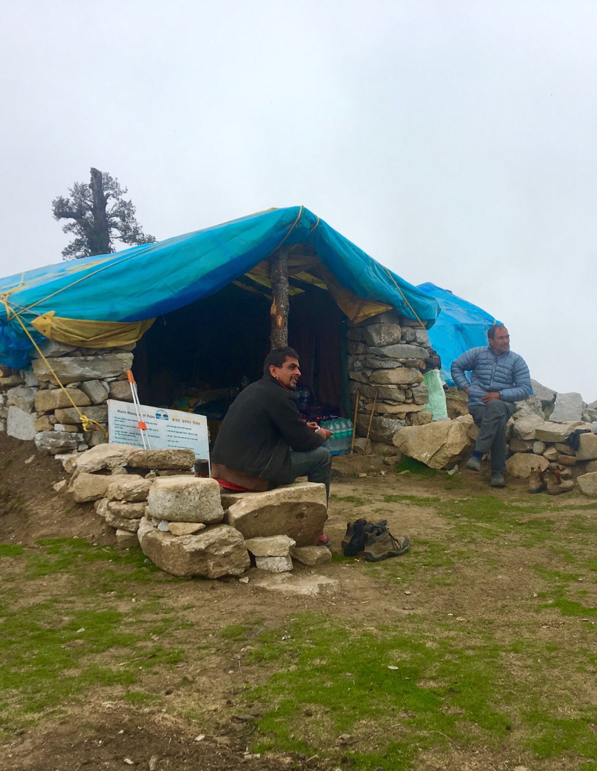 As we peer around Triund, we note at least a half a dozen tea stalls (shacks with tarp roofs and walls that provide tea and basic food items),