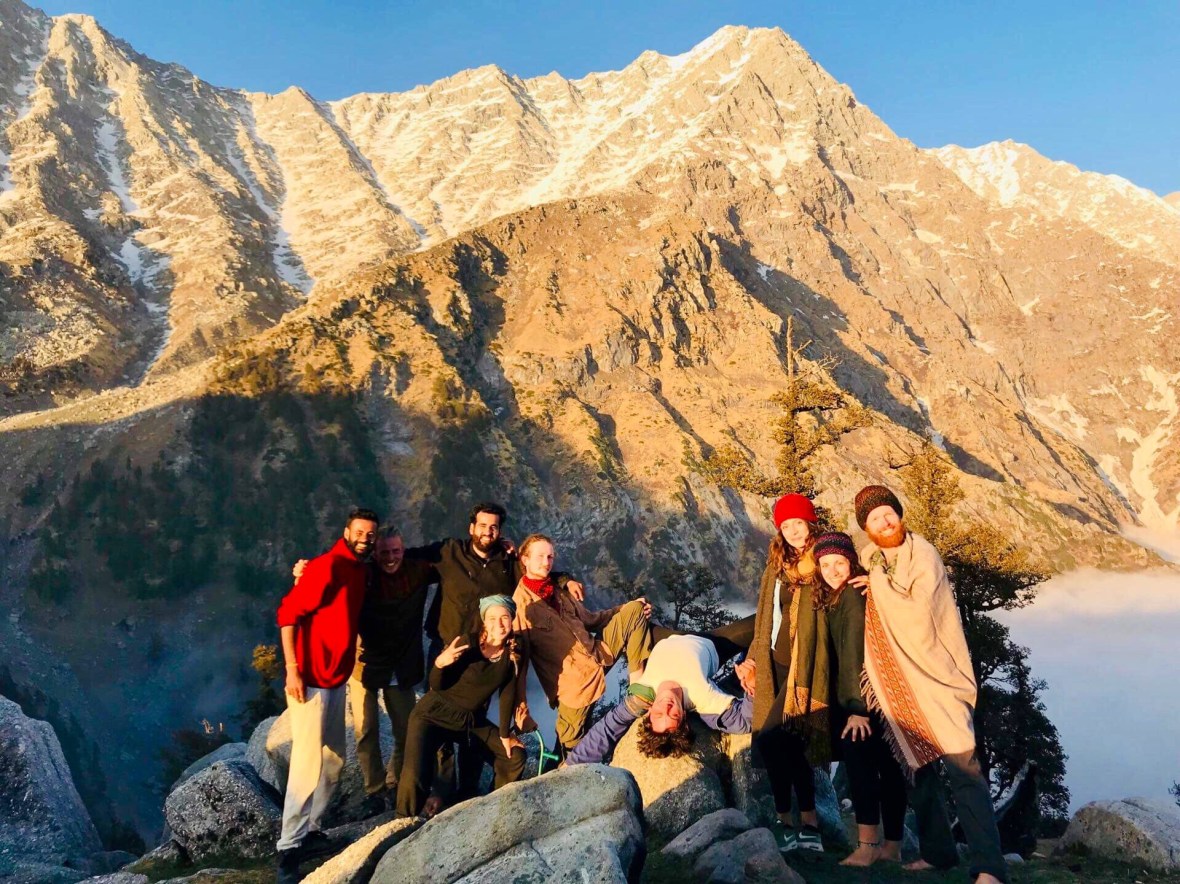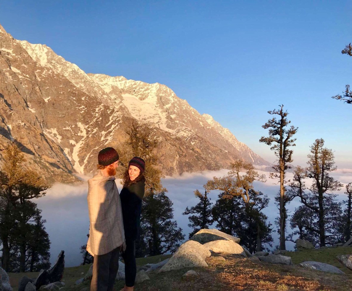 It’s early April, the dusted desert sands of Rajasthan in March have long since been washed from our hair, and after a few more long train rides, a quick stop to visit the famed Taj Mahal, and another long bus ride from Delhi into the windy foothills of Himachal Pradesh to the small mountain settlement of Dharamkot, I am wiping the sweat from my forehead and breathing heavily as we are once again climbing up, this time along with three of our friends, Eric, Venus, and Nicola, to a pristine location high above the densely populated India below. It’s Sunday, and fortunate for us, because as we climb we pass the thousand plus domestic tourists descending the mountain after their weekend getaway, but with that many people coming down from up there, I can’t help but wonder how they were actually getting away from anything at all. The five of us each carry our backpacks, stuffed to the brim with warm clothes and various picnic items ranging from crispy crackers, crunchy cookies, mouth-savoring cheeses, fresh sourdough breads, pickled olives, hard-boiled eggs, juicy tomatoes, herby pesto, and thirst-quenching wines. About halfway up, through forests of rhododendron