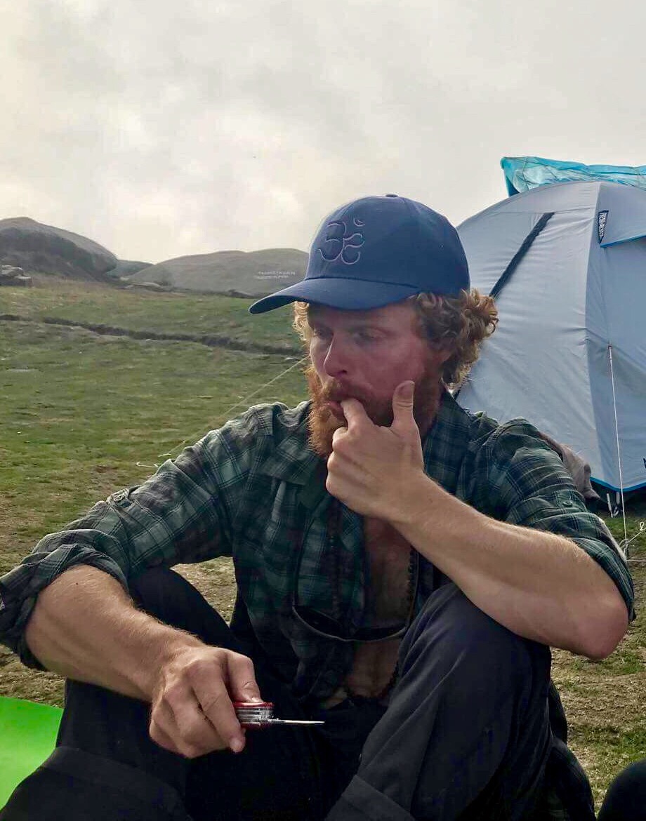 and the green grass under our feet is almost entirely covered in litter, left behind from all those tourists we passed on the way up. What had begun as an intended break from the crowded India below, only to find ourselves after three hours of climbing surrounded by trash, and possible inclement weather to boot, momentarily leaves us in disheveled states of mind. Even the birthday boy looks grim. Thankfully, we still have the momentum of Nicola’s birthday extravaganza, and after a few minutes we pick up our packs and continue our ascent, past the litter ridden Triund.