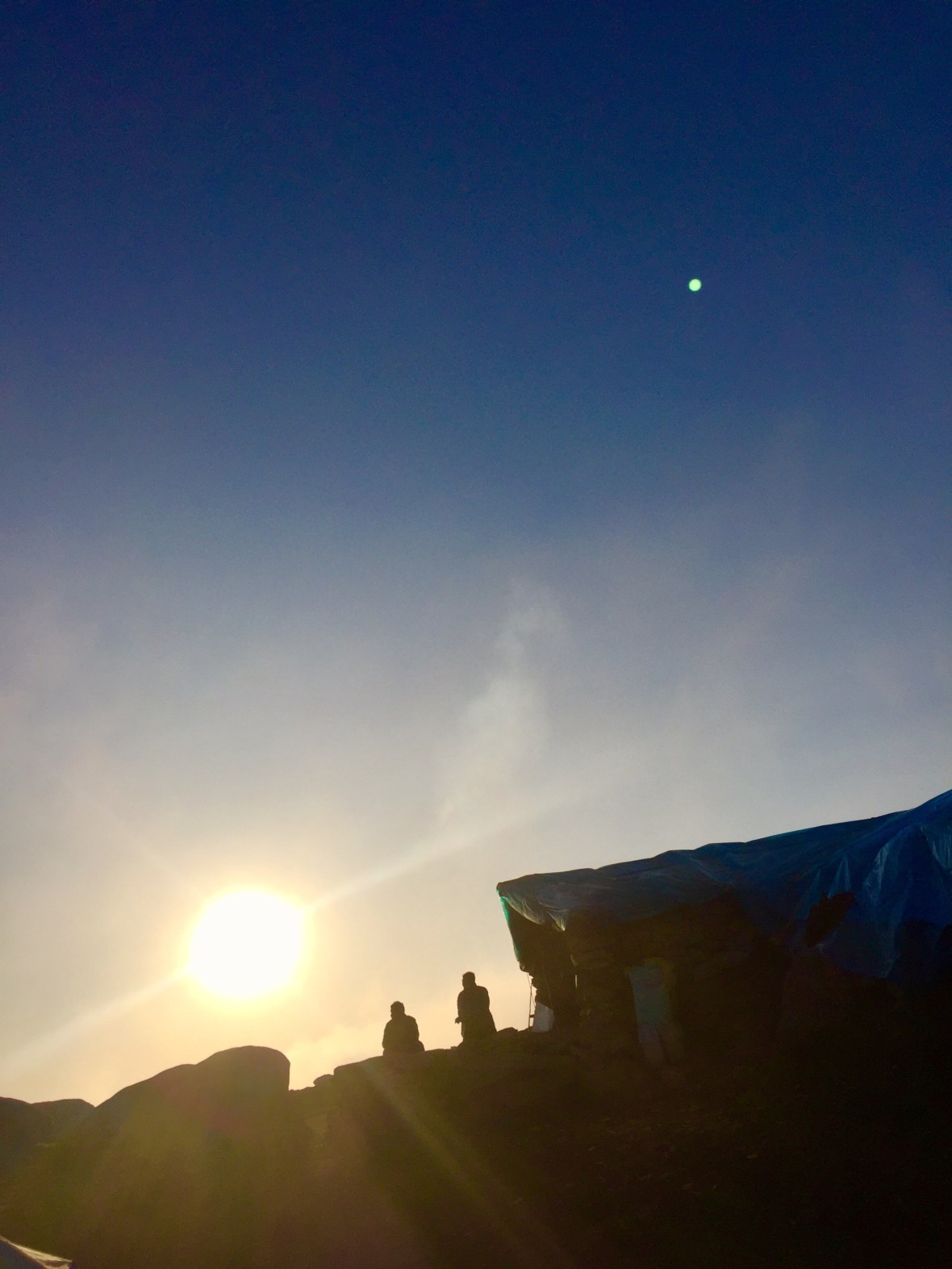 With a fire now lit and warm food being served to us from the only tea stall at Snowline, we continue this epic celebration for our friend Nicola under a now starry-filled sky. We gaze upwards to the streak of the Milky Way, awestruck by constellations such as Orion, Taurus, and the Big and Little Dippers. As we are thinking to ourselves “Can this day get any better?”, a full moon rises beyond the massive mountains behind us,
